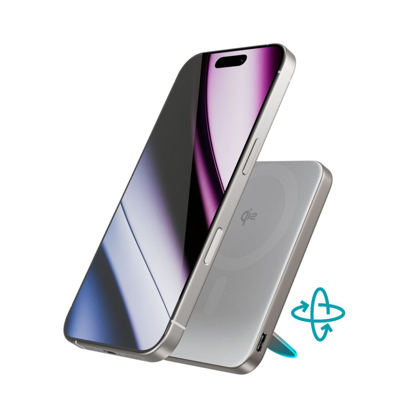 Epico UltraPack EM52 spojuje moderní bezdrátové nabíjení Qi2 s praktickým stojánkem v kompaktním a elegantním provedení. Díky certifikaci Qi2 a kompatibilitě s MagSafe nabízí rychlé bezdrátové nabíjení o výkonu až 15 W, což je až dvakrát více než běžný standard Qi. Integrovaný kovový stojánek lze otáčet o 360° a snadno ho nastavit do svislé nebo vodorovné polohy, ideální pro videohovory, sledování obsahu nebo použití v režimu StandBy. Silný magnet zajišťuje stabilní uchycení iPhonu bez rizika nechtěného odpojení.