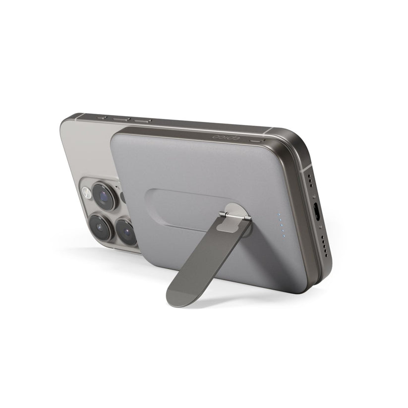 Bezdrátová hliníková powerbanka se stojánkem Epico UltraPack Qi2 Stand 5000mAh Mag+ EM52 - titanová