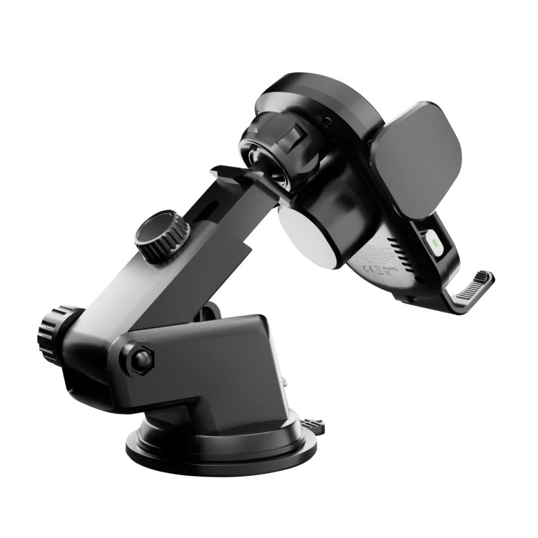 Držák je kompatibilní s telefony o šířce od 5.4 do 6.9 palců, takže pojme většinu moderních modelů. Postranní tlačítko umožní snadné otevření ramen a po vložení telefonu dojde k automatickému uzamčení pro bezpečné uchycení. Nabíjení začne okamžitě po vložení a zelený LED indikátor ti poskytne jasnou kontrolu nad stavem nabíjení.