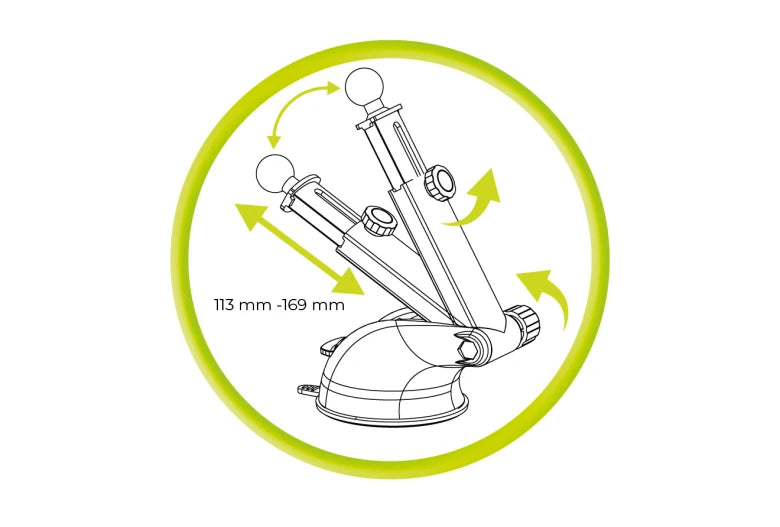 Díky teleskopickému rameni s rozsahem od sto třinácti do sto šedesáti devíti milimetrů si snadno nastavíš ideální vzdálenost telefonu. Možnost svislého i vodorovného použití a plná rotace v rozsahu tři sta šedesáti stupňů umožní přizpůsobení pro navigaci, hovory nebo poslech hudby. Nabíječka se díky silné přísavce snadno uchytí na palubní desku nebo čelní sklo.