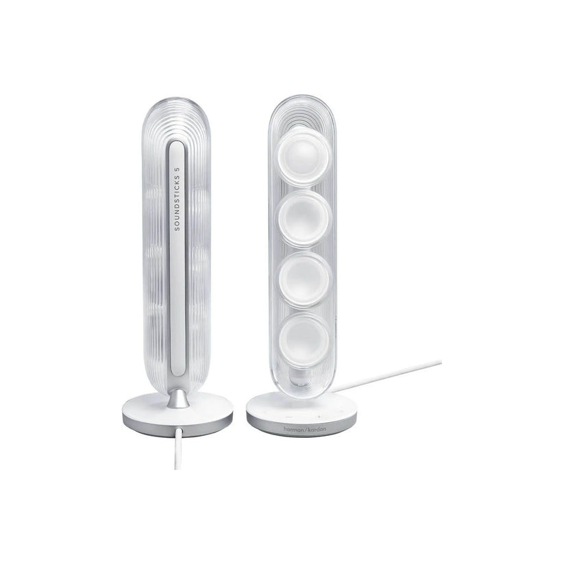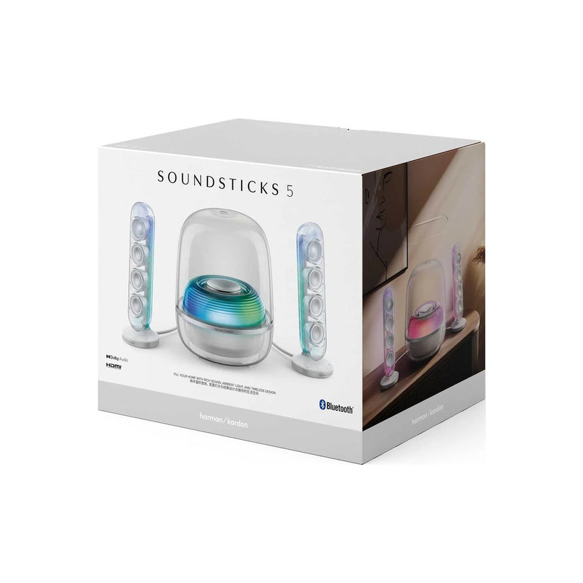 Dopřej svému interiéru legendární kus audio historie v moderním provedení. Harman Kardon SoundSticks 5 posouvá ikonický průhledný design na novou úroveň a kombinuje ho s prémiovými kovovými akcenty. Tento systém složený ze dvou satelitních reproduktorů a výkonného subwooferu s plně průhlednou kupolí se stane okamžitě středobodem každé místnosti. Vzdušnější konstrukce subwooferu a intuitivní dotykové ovládání na spodní straně satelitu zajišťují že používání je stejně elegantní jako samotný vzhled zařízení. SoundSticks 5 nejsou jen reproduktory ale umělecké dílo které naplní tvůj domov bohatým zvukem i ambientním světlem.