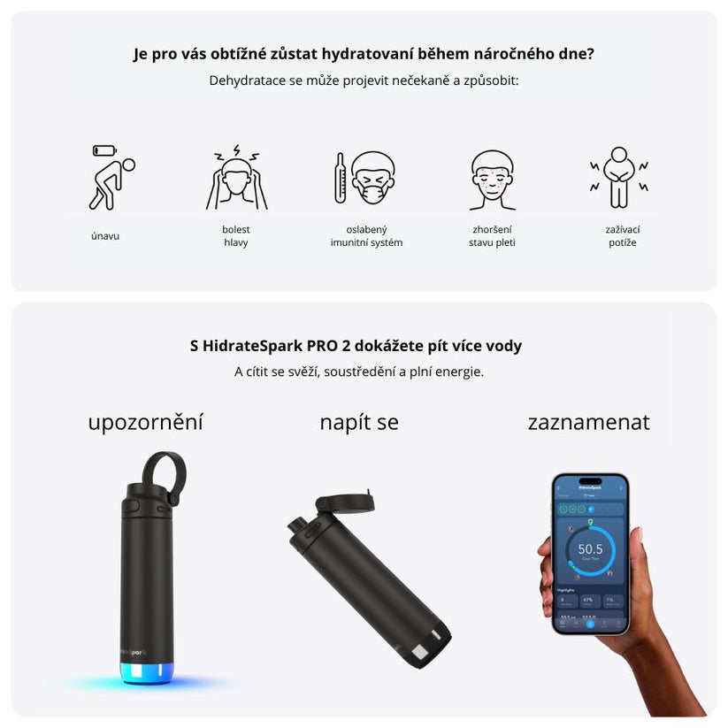 Chytrá lahev HidrateSpark PRO 2 621 ml - černá
