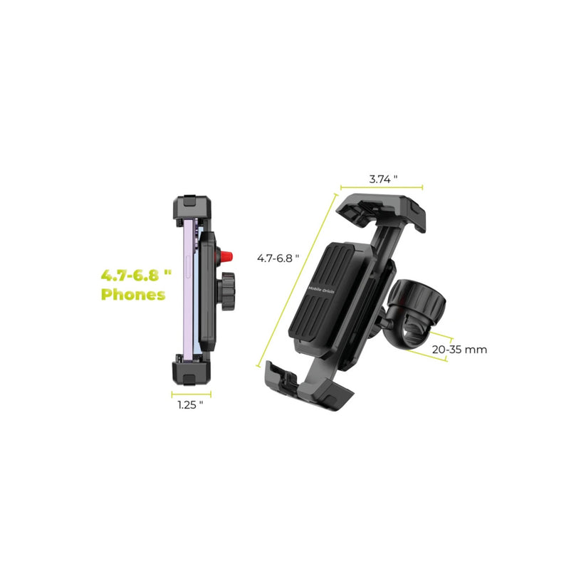 - Kompatibilní s telefony o velikosti 4,7–6,8 palce a řídítky 20–35 mm