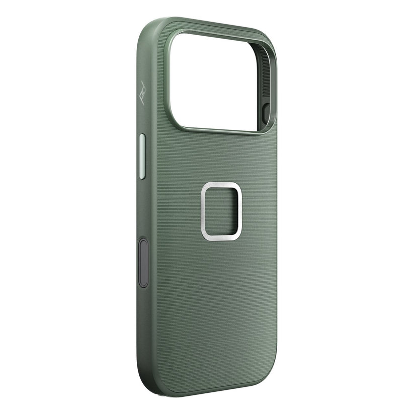 Peak Design Everyday Case představuje dokonalou rovnováhu mezi elegancí, ochranou a funkčností. Je vyroben z odolného recyklovaného nylonu a ultralehkého polykarbonátu s pouhými 2,4 mm tloušťky. Pogumovaný rám chrání iPhone při pádu z výšky až 2 metrů, zatímco hliníková tlačítka a tlačítko Capture Button zajišťují přesné a pohodlné ovládání. Verze s poutkem na prst (Loop) navíc přináší větší jistotu při používání.