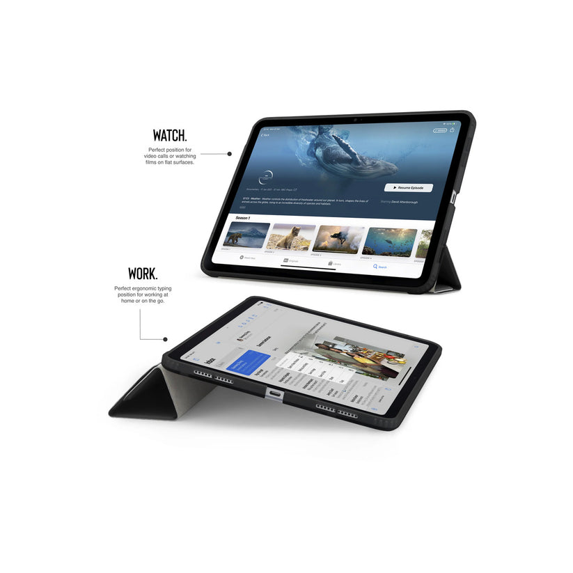 Seznam se s iPad Tri-Folio Smart Cover, štíhlým a ochranným pouzdrem navrženým tak, aby drželo krok se vším, k čemu svůj iPad používáš. Ať už sleduješ oblíbený seriál, nebo vyřizuješ pracovní e-maily, toto pouzdro ti poskytne potřebné zázemí. Chytrý trojsklonný kryt nabízí pozice stojánku 2v1, tedy vzpřímený úhel pro hands-free sledování videí a nižší ergonomický úhel pro pohodlné psaní, skicování nebo hraní her. Je to ideální doplněk pro každého, kdo hledá maximální všestrannost bez zbytečného nárůstu objemu zařízení.