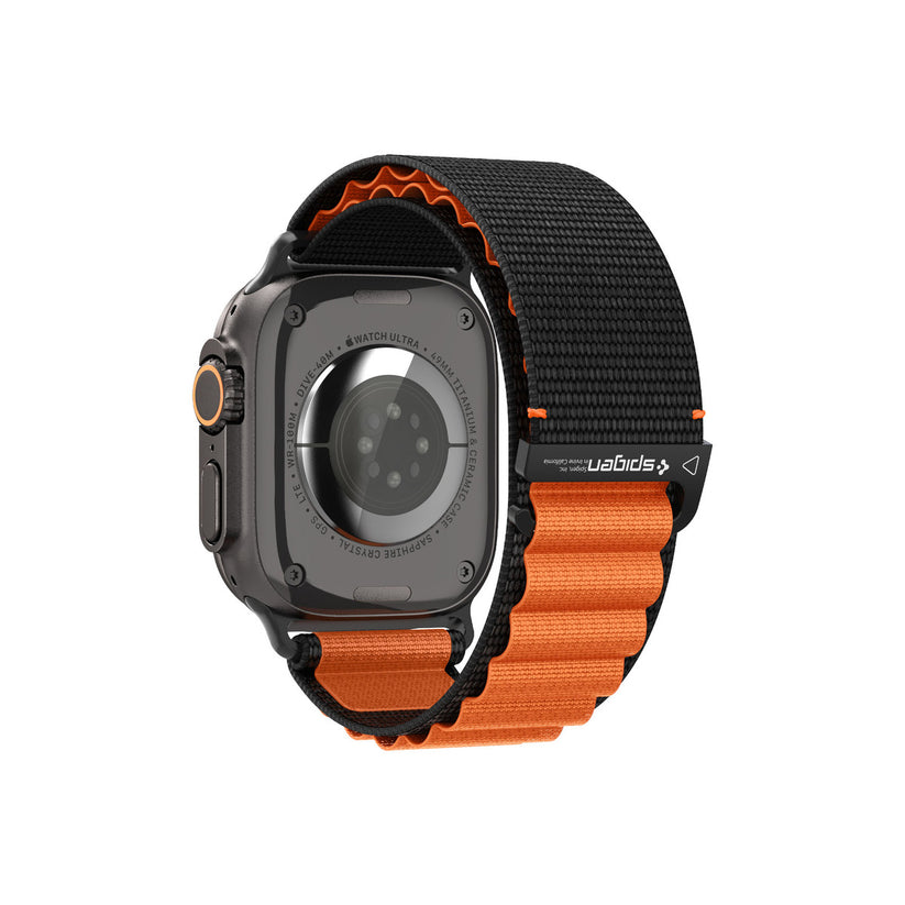 Řemínek pro Apple Watch 49mm/46mm/45mm/44mm Spigen Fabric Band (Hook) - černo-oranžový