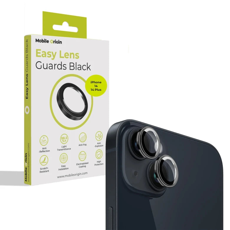 Sklo na fotoaparát pro iPhone 14 / 14 Plus Mobile Origin Easy Lens Full Cover - černé