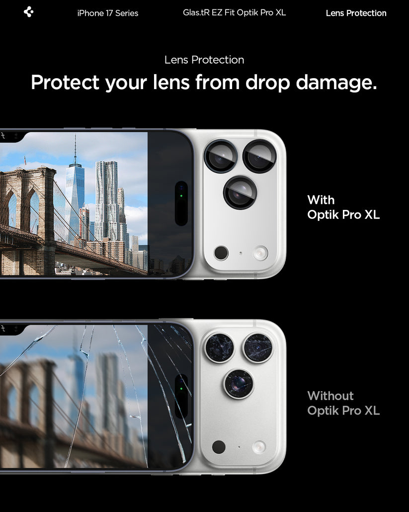 Sklo na fotoaparát pro iPhone 17 Pro Max Spigen Glass tR EZ Fit Optik Pro XL poskytuje kompletní ochranu objektivu tvého telefonu před poškrábáním, prachem a dalšími nečistotami. Díky preciznímu zpracování chrání fotoaparát ze všech úhlů a zajišťuje jeho bezpečnost při každodenním používání.